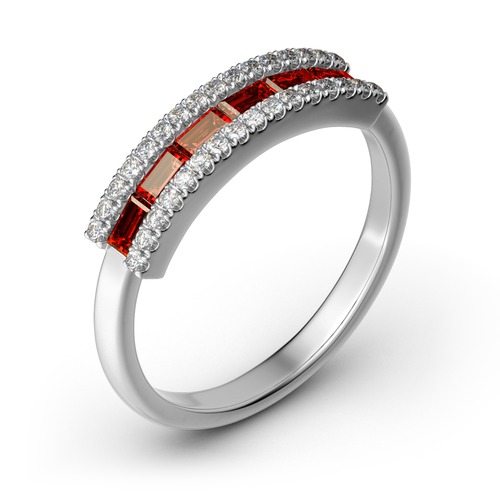 Stack this ring with your other rings to create a stylish and unique look. Expertly crafted in 925 sterling silver and you can customize the color of it and preview the look on our website. Invisible-set emerald-cut stones add spark to the simple but timeless design. Moreover, You can choose different-color stones to match the color of the metal. Is it very interesting to design your own jewelry? We have more choices for you to match with this ring. Just design a piece of jewelry to add to your jewelry box.