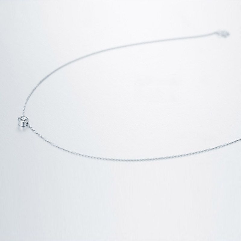Simple Round Cut Stone Pendant Sterling Silver Necklace