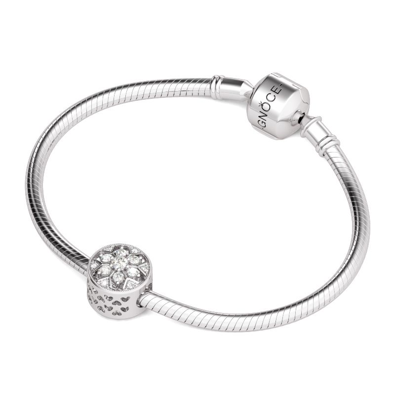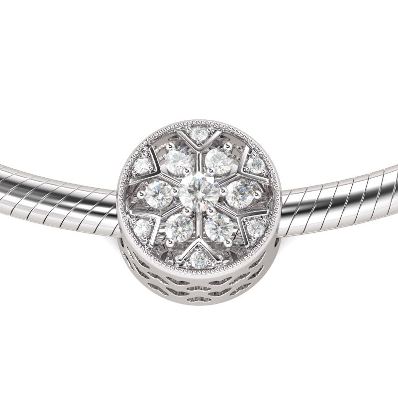 What pleasant time to hold snowflake in your palm! Stare at this snowflake charm to fully experience its purity in Christmas. The distributed hearts, the hollow design flakes and the sparkling white diamonds all contribute to create an exquisite and stylish charm.