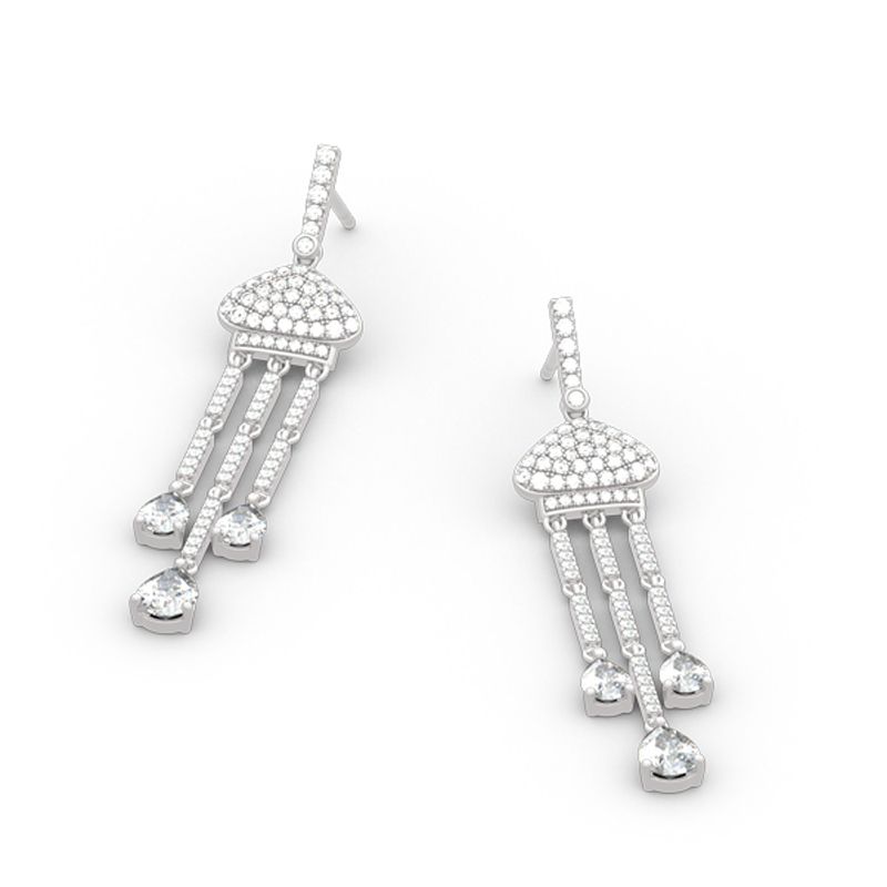 Standing majestically on the banks of River Yamuna, the Taj Mahal is synonymous to love and romance. Expertly crafted in sterling silver,the earrings features a classic Taj Mahal shape studs matching with three shimmering chains and drops, which makes it more unique. Exquisite and sparkling, this romantic choice is certain to become a treasured keepsake.