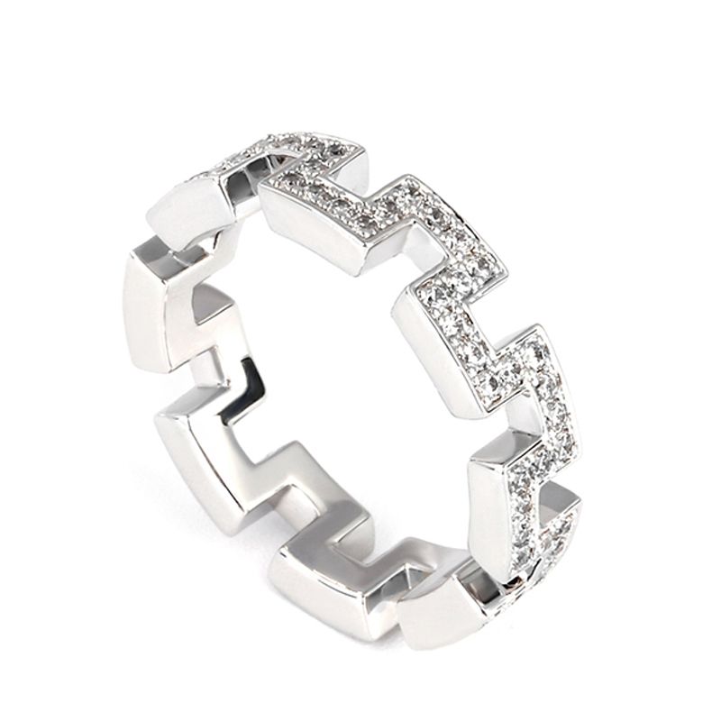 The Great Wall of China, one of the greatest wonders of the world, is an awe-inspiring feat of ancient defensive architecture. Crafted in sterling silver, this dazzling style shimmers with round stones that completely surround the band.This ring will make an exquisite wedding band, in addition to being a one-of-a-kind designer ring.A brilliant expression of love, this band is certain to be cherished.