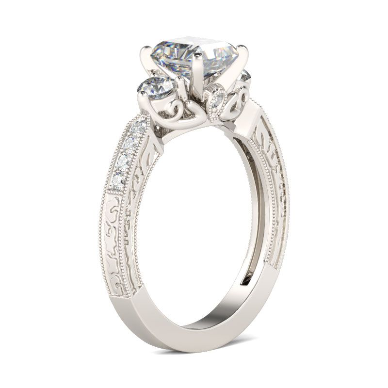 Graceful and glamorous, this ring delivers eye-catching style. Crafted in sterling silver, this dazzling choice showcases a shimmering princess cut center stone flanked by two round stones, while additional stones sparkle on ring’s shank, creating a dazzling look from any angle.Treat yourself or beloved her to this stunning ring that celebrates endless love and passion.