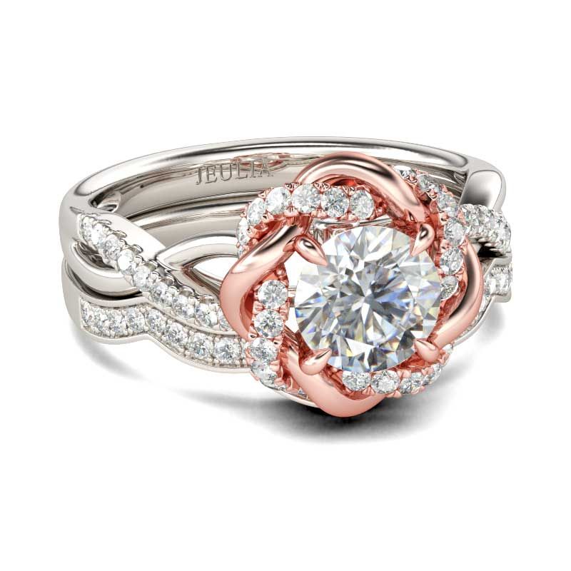 Twist Halo Round Cut Sterling Silver Jewelry Set