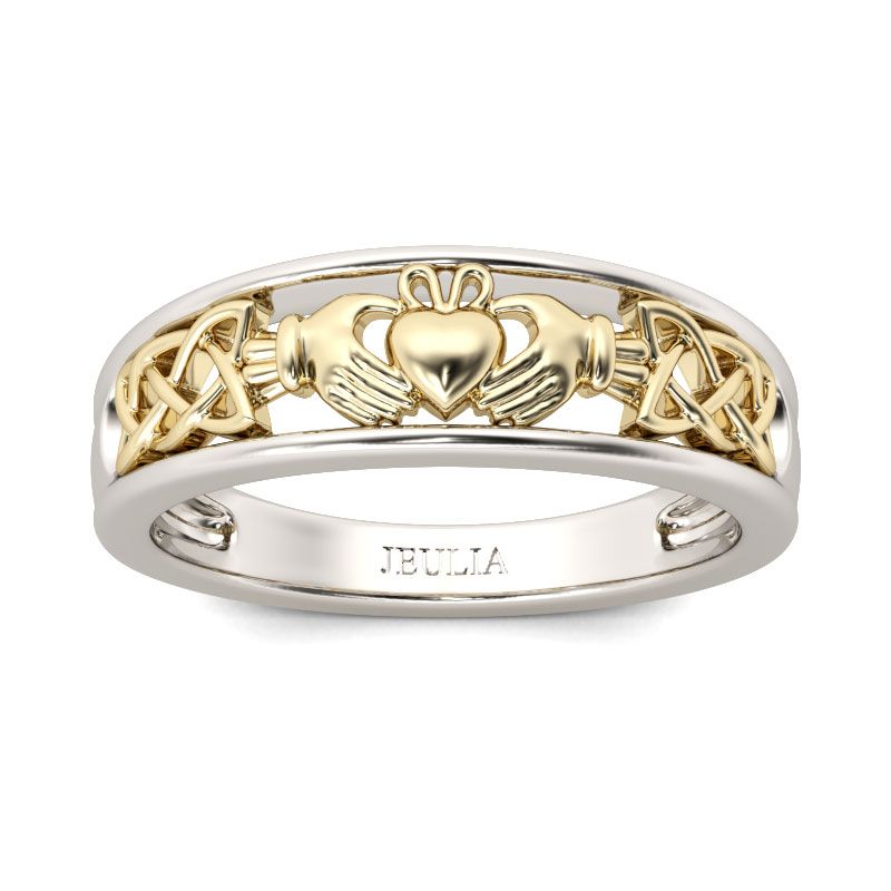Make the moments magical with this elegant claddagh band. Crafted in sterling silver, the ring showcases the iconic claddagh heart, hands,crown as well as repeating celtic knot designs at the center of the band. On the day you speak your vows, take your beloved’s hand in yours and make the sweetest statement with this meaningful band.