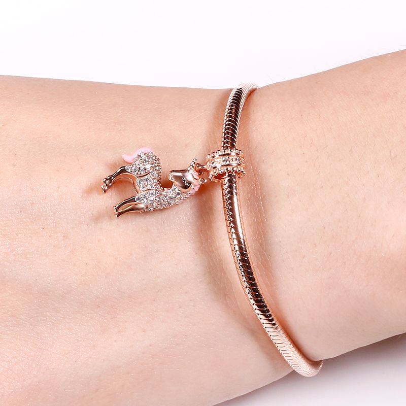The unicorn, said to represent purity and grace, is a well known an emblem of the world’s divine presence. This is the update version of unicorn serie, add this 18k gold rose plated charm to your bracelet or necklace will be a perfect choice.