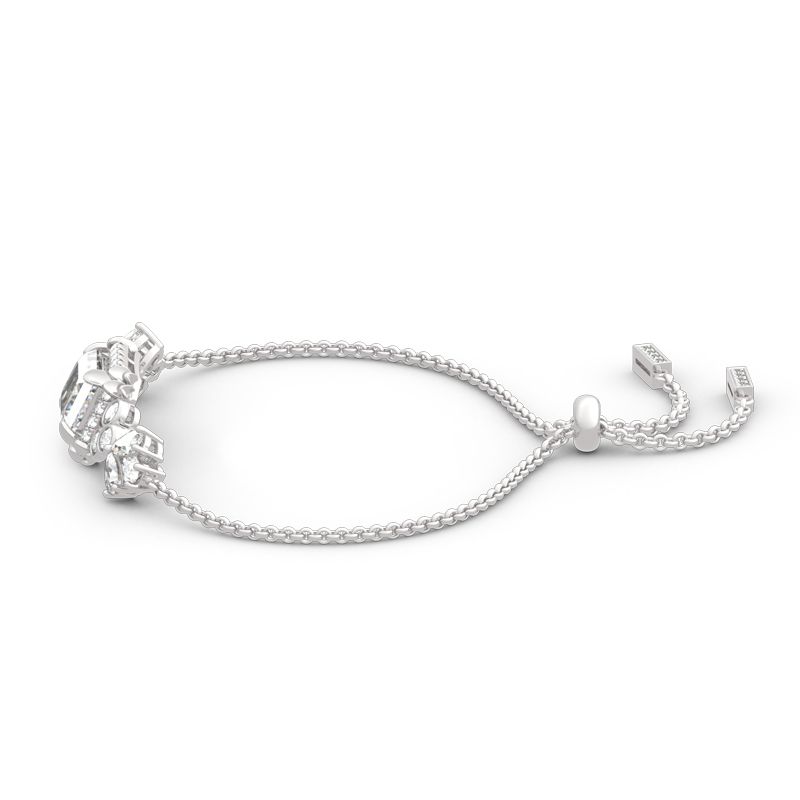Vintage Flower Halo Emerald Cut Sterling Silver Bolo Bracelet