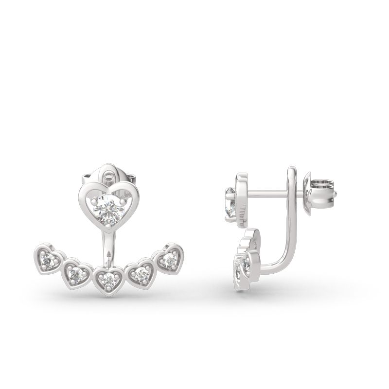 Hearts decorated with shimmering round stones are showcased in these sweet jacket earrings for her. Beautifully crafted in sterling silver, each dainty open heart stud earrings shimmers with a round white stones center. Polished to a bright shine, these dainty earrings secure comfortably with backs. Charm the one you adore with these beautiful heart jacket…