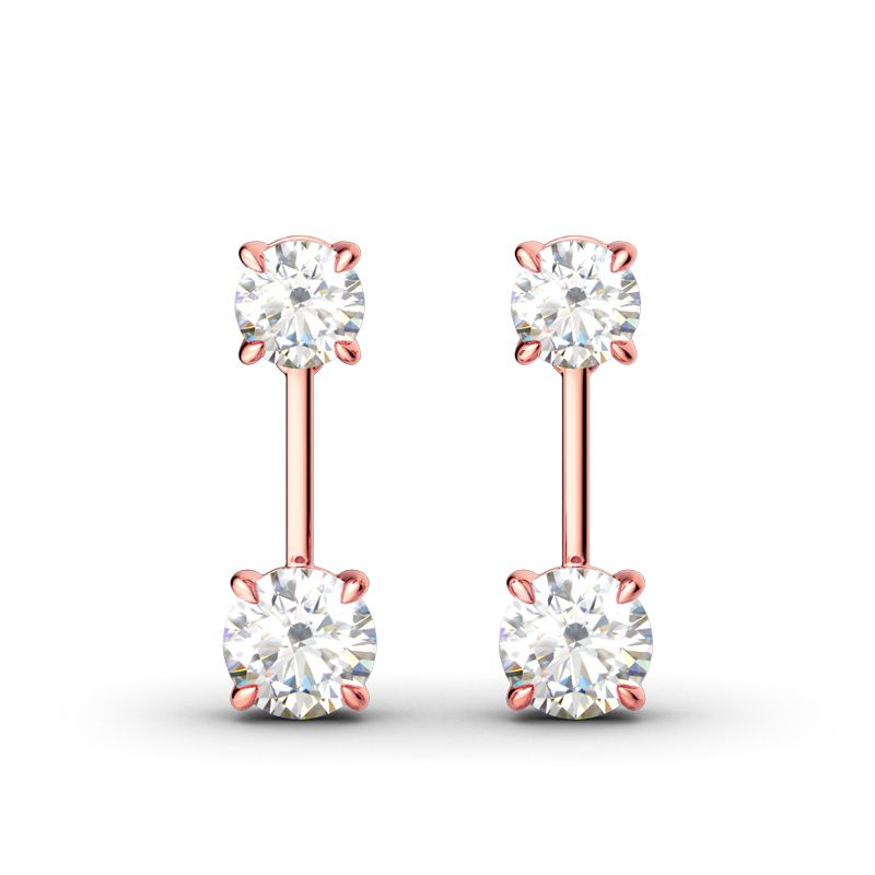Classic and elegant, this pair of earrings is a perfect choice for fans of simple style. Crafted in warm rose gold tone sterling silver, the earrings show an understated beauty with its two-stone design. The stone on the stud is a 6.5mm round stone and the drop of earring is a 7mm stone, which catch…