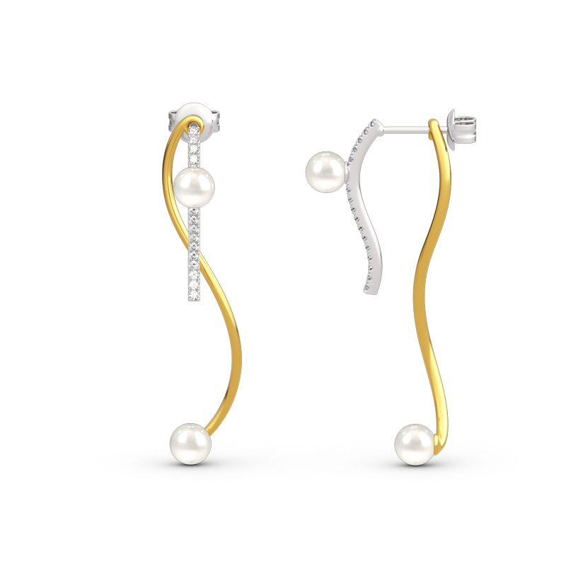 Stunning and unique, this pair of earrings is an adorable choice for fans of pearl jewelry. Crafted in two tone sterling silver, inspired from contemporary style, this pair of earrings shows an elegant look with its intertwined curved ribbons. Four pearls and shimmering round stones are set on the ribbons to add extra sparkle to…
