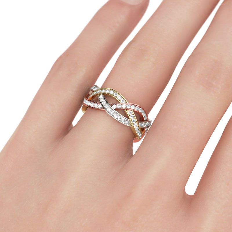 Stylish and stunning, this band will be a nice holiday gift for Mom, sister,friend or yourself! Crafted in tri-tone sterling silver,this band will attract every lady with its delicate intertwined shank. Stones are well set on the intertwined shank to add sparkle to it. The band will surely show a sparkling and stylish look on…
