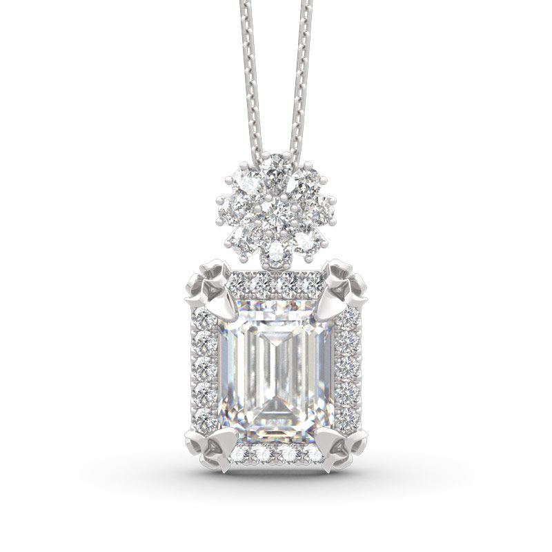 Sparkling and stunning, this necklace will capture your heart at first sight. Crafted in sterling silver, the pendant features an emerald-cut center stone wrapped in a vintage-look halo of shimmering round stones, which shows a really exquisite look. With a glistening flower to perfect the design and add extra sparkle to the pendant, the necklace…