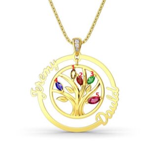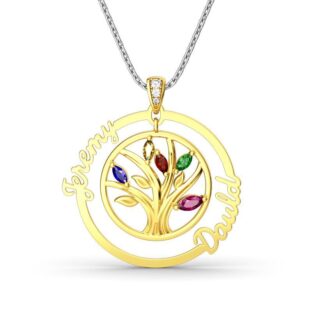 $554.67 out of 5This family tree pendant necklace is a perfect holiday gift for mothers,friends,sisters or lovers. Crafted in yellow gold tone sterling silver, set with colorful stones, this pendant necklace will show a beautiful look on your neck. You can custom two names on the out ring to record your family ties, love and friendship. Surprised her…