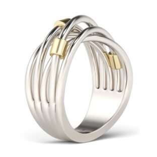 A contemporary look, this multi-row ring makes a fashion statement. Crafted in sterling silver, this elegant style gleams with sumptuously crossover rows and yellow gold-tone knot. Polished to a bright shine, this design simply shimmers. Elevate your attire with this fabulous crossover ring. Setting Information Metal : 925 Silver Weight : 6.81 g Width :…