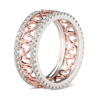 Dainty and delicate, this heart ring makes a little lovely gift for loved one or yourself. Heart is one of the most popular motifs in jewelry. It’s often related with love. Crafted in two tone sterling silver, the ring features five rose gold tone hearts sculptured on the shank. Shimmering stones are set on the…