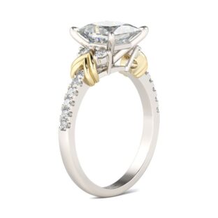 Delicate and sparkling, this rings will be a nice holiday gift for yourself or loved one. Crafted in two tone sterling silver, the engagement ring features a princess-cut stone accented with two cluster round stones on both sides. Two gold tone hearts and glistening round stones adorn the shank. The ring will be certain to…