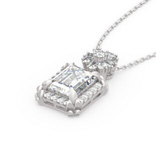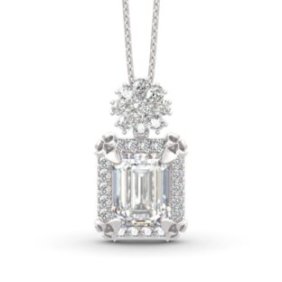 $1204.60 out of 5Sparkling and stunning, this necklace will capture your heart at first sight. Crafted in sterling silver, the pendant features an emerald-cut center stone wrapped in a vintage-look halo of shimmering round stones, which shows a really exquisite look. With a glistening flower to perfect the design and add extra sparkle to the pendant, the necklace…