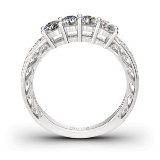 $1254.67 out of 5Exquisite and unique, this ring will capture your heart at first sight. Crafted in sterling silver, the ring features four glistening stones set on a vintage-look shank. The shank is sculptured with delicate carvings and filigree detailing, to create an elegant look for the ring. Polished to a bright shine, this magnificent ring affords her…