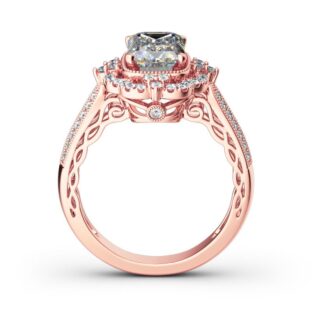 $1204.60 out of 5Express all the love you hold in your heart with this exquisite ring. the engagement ring showcases a magnificent heart-shaped center stone. A rose tone halo frame of smaller round stones wraps this center stone in a sparkling embrace, while additional stones line the ring’s shank. On that special day, when you ask for her…
