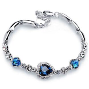 $394.75 out of 5Love and fashion combine to create this dazzling bracelet. Crafted in stainless steel, this chic and sweet look features three blue heart cut stones accross the center. Smaller stones adorn the bracelet, adding subtle sparkle. A great anytime choice, this fashion bracelet is sure to become an instant favorite. Setting Information Metal : Stainless Steel…