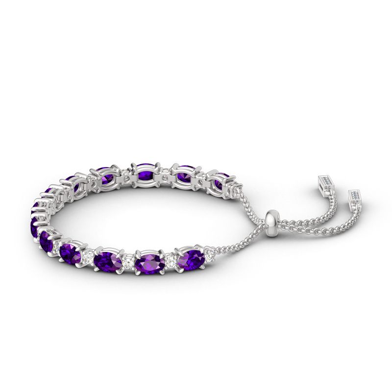 So glamorous, this on-trend bracelet elevates your attire. Fashioned in sterling silver, this impressive design features alternating purple stones and smaller white stones. Elegant and unique, you can wear one, two or more bolos together to create a look all your own. A great anytime choice, this fashion bracelet is sure to become an instant…