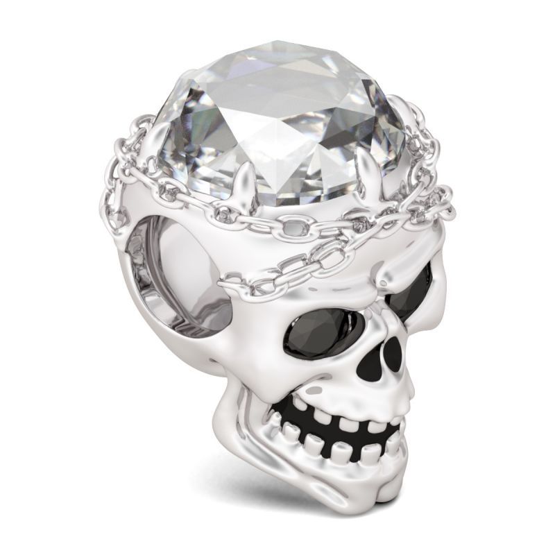 Choose you or someone special in your life a delicate skull charm to make a unique style. With studded pure stones on it, the charm looks sparkling and shining in every direction. This skull charm is uniquely designed by the inspiration of shackles and restraints. Setting Information Metal : 925 Silver Weight : 3.2 g…