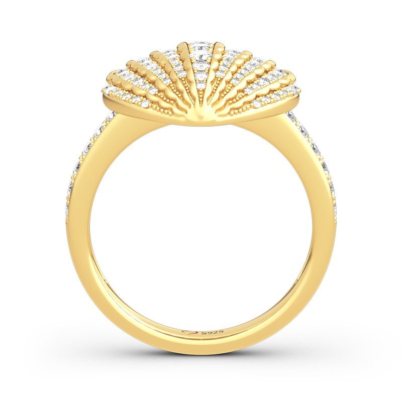 Level up your summer look with our seashell ring! Magically speaking, scallop shells are said to represent travel and movement. Expertly crafted in sterling silver, this sculpted oyster shell design features an lines pattern set with shimmering stones.A lovely look, certain to garner compliments, this comfort-fit ring captivates with round stones and a polished shine….