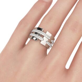 Rows of round ezjewelrypick® Stones lend elegance to this distinctive wedding band. Side Stone Number of Stones : 96 Carat Weight : 0.96 ct Stone Shape : Round Stone Color : Diamond White Stone Size : 1.1 mm Stone Type : ezjewelrypick® Stone Setting Information Metal : 925 Silver Weight : 6.8 g Width :…
