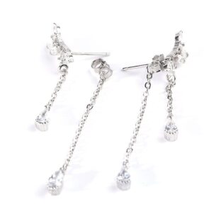 Treat your special angel to her own set of sparkling wings. Each earring showcases a sparkling wing with two shimmering pear cut stones. A splendid complement to her any attire, these glamorous drop earrings shimmer with exquisite detail. These lovely earrings make an elegant accessory. Setting Information Metal : 925 Silver Width : 17 mm…