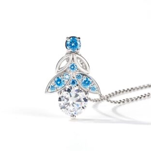 Glistening and glamorous, this necklace will win your heart. Crafted in sterling silver, it features a shimmering round cut center stone wrapped in sparkling blue stones, bringing out it’s beauty and sparkle. Additional stones form butterfly shaped design to add more elegance to this necklace. This necklace is a splendid choice you are sure to…