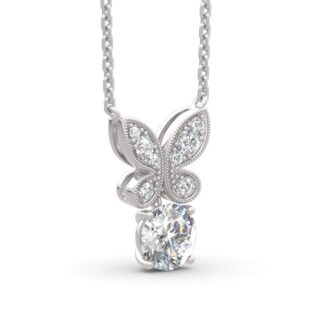 Showing elegant and timeless beauty, this necklace makes an adorable gift for yourself or loved one. The butterfly adorned with sparkling stones in varied sizes which wrapped in a frame of milgrain details.Besides,a sparkling round cut stone glistens below the butterfly.Sparkling stones add an element of glamour to this feminine design. Dainty and shimmering, this…