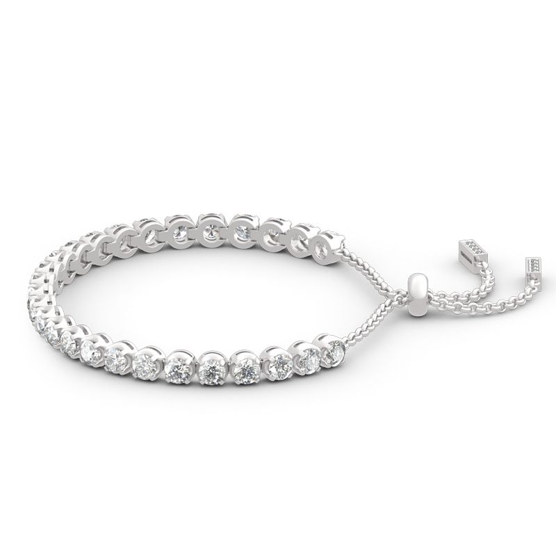 Illuminate her wrist with the lavish look of this gleaming sterling silver adjustable tennis bracelet. A row of princess stones radiate optimal shimmer. Uniquely designed, each shimmering stone is set to appear extra large and more brilliant, creating twice the sparkle. Held together with a bolo clasp, this bracelet is a chic mix of glamour…