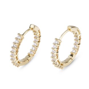 Hoop earrings are a classic and versatile choice for the sophisticated woman. With a touch of brilliance, the simplicity of a hoop earring becomes magnificent. Fashioned in sterling silver, each hoop features a double row of shimmering stones set along the inside and outside edge. Perfect for everyday wear, these earrings add a bright pop…