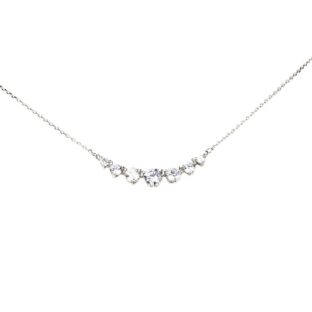 Create a wonderful memory when you present this glimmering necklace to the one you love. Regal and radiant, this necklace is perfect for that special evening out. It showcases seven shimmering round stones, graduating from smallest to largest to smallest, are arranged in a clever chevron pattern, creating this eye-catching style. Setting Information Metal :…