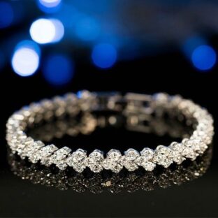 Create a sensation with this fashion-forward tennis bracelet. This graceful look features a fluid line of sparkling trios of round stones. This classic, elegant and timeless look blends sophistication with radiance and sparkle. Setting Information Metal : White Copper Height : 6.65 mm Chain Length : 170 mm
