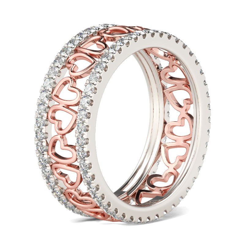 Delicate and meaningful, this ring honors your love. Crafted in two tone sterling silver, two heart-cut center stones are set on a two tone twisting shank. The two hearts stands for your loved one and yourself. You two hug and support each other. Treat yourself or surprise her with this masterpiece this holiday. Primary Stone…