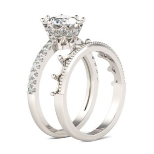 Here is your chance to feel like a queen. Glistening with detail, the shimmering engagement ring is decorated with round stones, while the coordinating band is inspired by a crown. This ring set is a royal look that celebrates any special occasion. Treat yourself, or send a hint to a special someone. You won’t be…