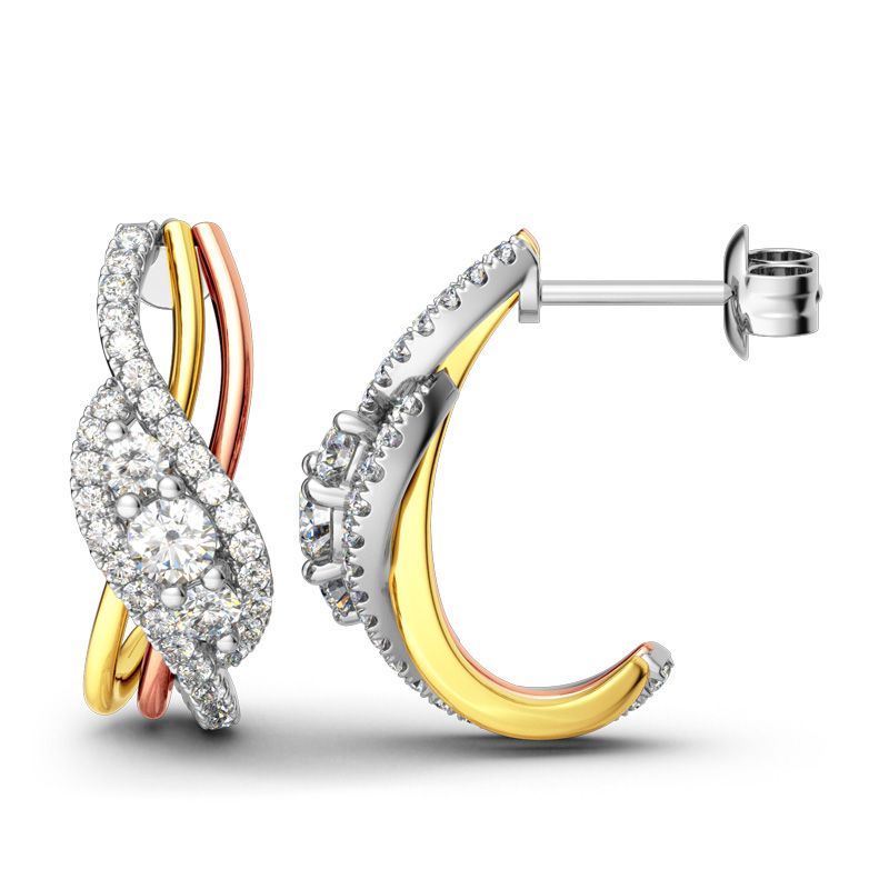 Rich with color and sparkle, these tri-tone earrings are perfect for any occasion. Each shimmering design features three sparkling round stones accross the center, while additional stones adorn the curved ribbon, creating a unique and romantic design that never succumbs to trends. Setting Information Metal : 925 Silver Weight : 4.26 g Width : 8.4…