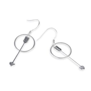 Celebrate your life with this pair of stunning earrings. Crafted in oxidized silver, the earrings show unique and pristine beauty with its exquisite workmanship. Inspired from the Cupid’s arrow, our designer created this piece.A heart-point Cupid’s arrow is set in a rope design circle to perfect the design. It’s a best gift of love for…