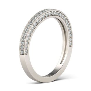 Celebrate your everlasting love story with three sided pave band. Stunning as a wedding or anniversary band, this exquisite style is lovely alone or paired with engagement ring. Buffed to a brilliant luster, this ring is a beautiful reminder of your timeless romance. Side Stone Number of Stones : 79 Carat Weight : 0.79 ct…