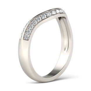 Confidently declare your love with this classic band. Fashioned in sterling silver, this band is lined with shimmering stones and features a slight contour at the center that fits beneath her solitaire engagement ring, wrapping it in a sparkling embrace. It’s a classic look she’ll adore. Jewelry makes a great gift – surprise her with…