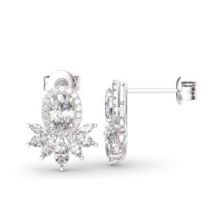 Designed to catch and reflect light, these stunning earrings are a spellbinding choice. Crafted in sterling silver, each design highlights a shimmering oval-shaped stone wrapped in a halo frame of dazzling round stones. Additional marquise cut stones add more sparkle to the design. So splendid and sophisticated,these breathtaking earrings elevate her evening look. Setting Information…