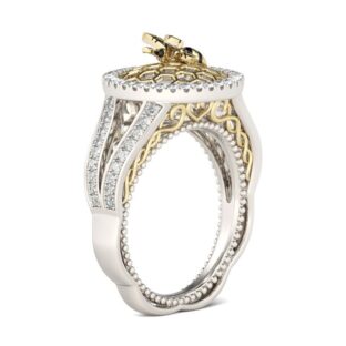 Unique and stunning, this bee ring will take your breath away. Bee is a trending motif in jewelry design. Crafted in two tone sterling silver, the ring features a bee stays on a honeycomb which wrapped in a halo of round cut stones. Along the split shank, shimmering round stones are set to make the…