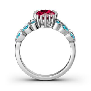 Uniquely designed to be noticed, this bypass ring makes the fashion grade. At the center, a charming rose and red heart-cut stone represent beauty and love. A delightful design you are certain to love, this ring is a romantic treasure. Primary Stone Number of Stones : 1 Carat Weight : 2.3 ct Stone Shape :…