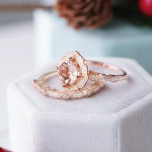 A vintage and exquisite look, this engagement ring will capture your heart at first sight. Crafted in sterling silver, this beautiful design showcases a round-cut center stone set on a nature-inspired mount. Along the vintage-inspired shank, leaves are sculptured on it. For this ring, you can customize the color of metal and the stones to…