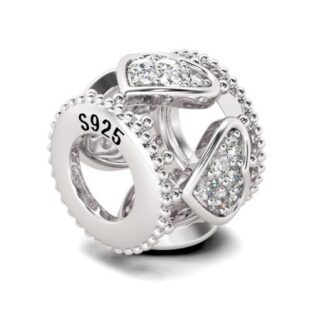 Capture all memorable happy moments with this exquisite crystal charm. The hearts are studded with white sapphires which help to create adorable and endearing effect. Setting Information Metal : 925 Silver Weight : 1.51 g Width : 8.5 mm Height : 9.7 mm Thickness : 9.7 mm Inner Diameter : 4.5 mm