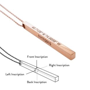 This beautiful bar pendant is sure to become a staple in anyone’s jewelry box. Personalize this sterling silver piece with up to 4 inscription along with three metal colors of your choice, this necklace is a truly personalized piece you’ll cherish for years to come. Setting Information Metal : 925 Silver Width : 3 mm…