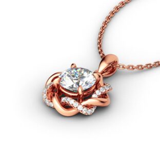 Full brilliance is revealed through delicate round stone and twisted halo. This charming design features a sparkling round cut stone at its center. Ribbons of rose gold-tone twist through the classic love knot design. Dainty and shimmering, this necklace is sure to cherish. Setting Information Metal : 925 Silver Weight : 5.27 g Width :…