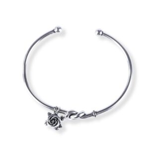 Simple but not plain, this bangle makes an adorable gift for loved one or yourself. Crafted in oxidized silver, the bangle shows unique and pristine beauty with its exquisite workmanship. The bangle features a rose dangle on a knot bangle, which both means love, making the bangle a meaningful piece. The cuff bangle is easy…