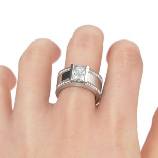 Primary Stone Number of Stones : 1 Carat Weight : 2.85 ct Stone Shape : Princess Stone Color : Diamond White Stone Size : 7*7 mm Stone Type : Stone Side Stone Number of Stones : 57 Carat Weight : 1.31 ct Stone Shape : Round Stone Color : Diamond White Stone Size : 1.1,…