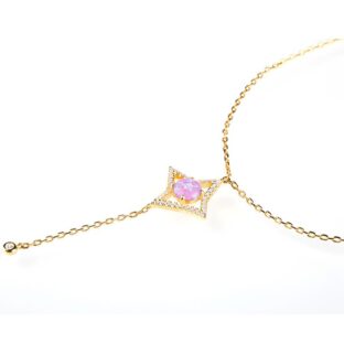 Pretty,dainty and feminine, this opal necklace is sure to be treasured by anyone you give it to. It showcases a beautiful pink-purple color opal encircled in a shimmering star-shaped frame. The opal stone has different flashes of color when it hits the light. May you have a bright and dazzling future as stars. Setting Information…
